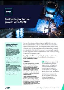 In this case study, Mathew Lee, Quality Manager at Taylors, discusses the ASME certification process and how it has brought several benefits and growth prospects to the company.