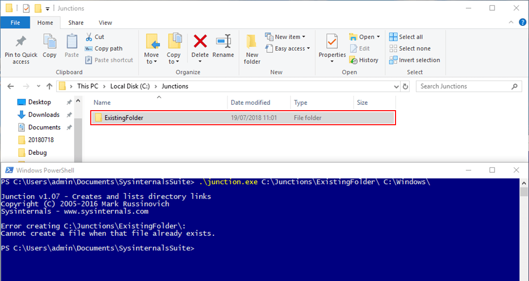 Another tool that could be used for this type of attack is called mklink.exe from Windows, but this requires elevated privileges, which would not have been possible in this situation (the point is that we’re attempting to gain elevated privileges).