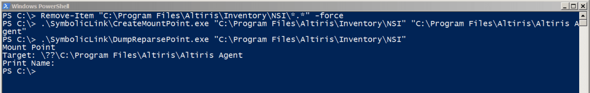 We then created a mountpoint which points to the folder ‘Altiris Agent’. It’s worth noting that this folder must be empty for the redirection to be possible. Since we have full permissions over every file, this was trivial to complete. The mount point was created and verified using James Forshaw’s symboliclink-testing-tools.