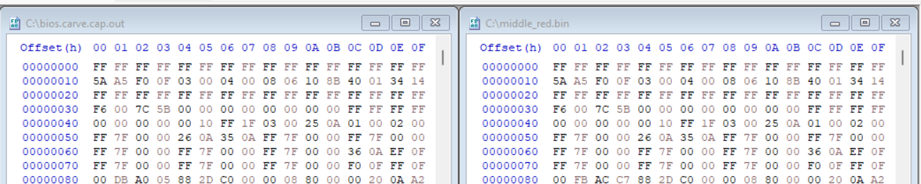 The update BIOS image contains the information that would be placed in the BIOS region. Note, we can’t directly flash the bios.cap file onto the flash chip as there are important sections missing, such as the Intel ME section.