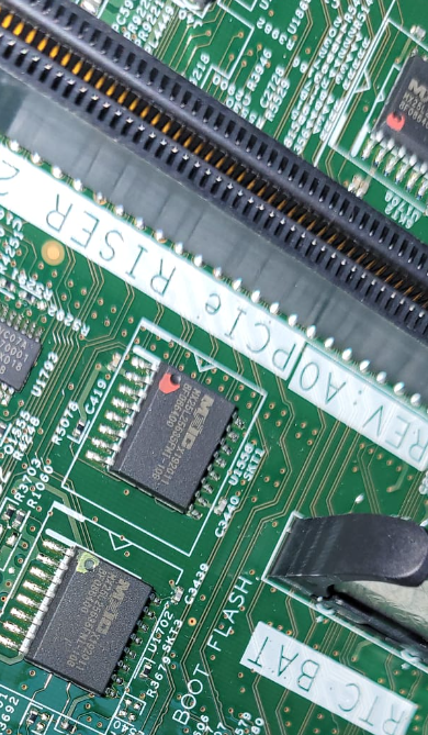 Note there are three chips in total - the bottom green flash is used for CIMC/BMC, the middle marked with red is the main BIOS flash and the top one (slightly out of frame) is the backup BIOS flash.