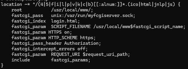 Another method to exfiltrate information was identified through writing a file to the web root with a specific filename in order to match the regex inside the nginx configuration.
