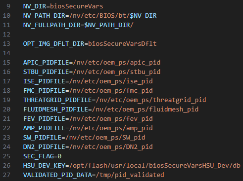 While looking around CIMC and the BMC, an interesting script was discovered which is executed on start-up. The intent behind this script is to prepare the BIOS with the appropriate secure boot databases and settings.