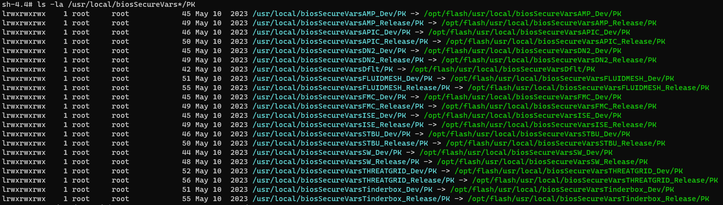 As we have compromised the BMC, we can intercept or modify this process with our own PID or keys. By creating or overwriting the /tmp/pid_validated file, we can trick bios_secure_vars_setup.sh into thinking the device is something else and provide a different set of keys.