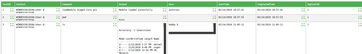 One of the issues we’ve overcome in this release was around tracking tasks; there was no way to determine what output related to which issued command. This was largely due to the implant not using task ID’s that were tracked throughout the entire command process flow.