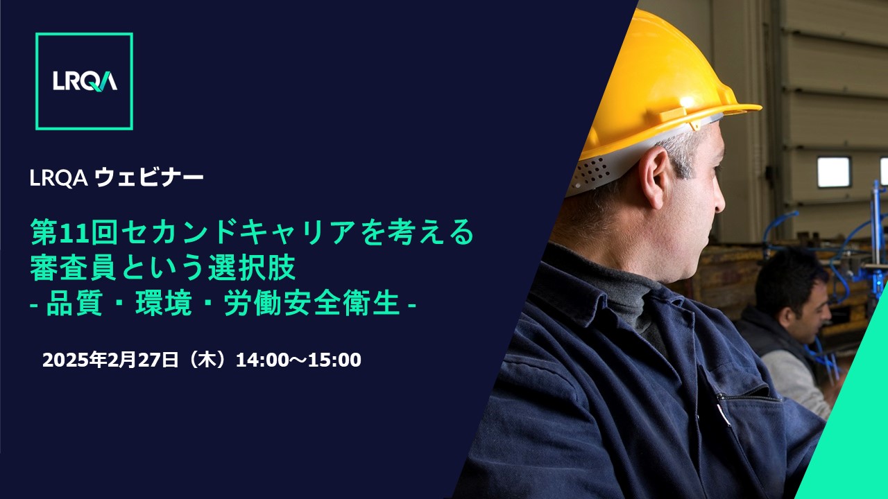 毎回ご好評いただいているウェビナーシリーズ「セカンドキャリアを考える」を再び開催いたします。主に第2キャリアとして審査員を考えている方向けにLRQAの審査員が審査の仕事を語ります。今回のウェビナーは、品質、環境、労働安全衛生の分野で審査員を目指す方々を対象にしています。