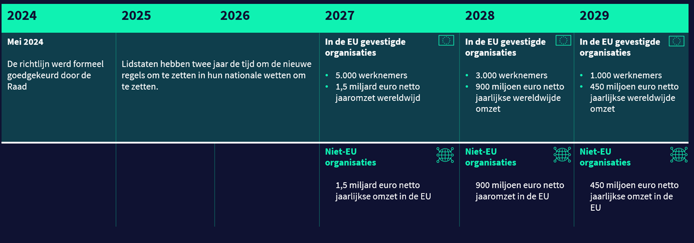 Vanaf 2027 zullen de regels geleidelijk van toepassing worden op organisaties.